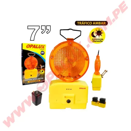 Luz de barricada LED para seguridad vial color ambar con batería para uso 300 hrs con fotocelda