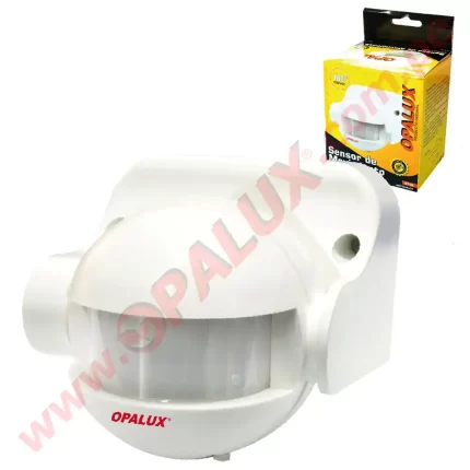 Sensor de movimiento 180° de pared detección a 12 mts horizontal tecnología PIR instalación hasta 2.5mts altura tiempo 10 seg – 7 min.