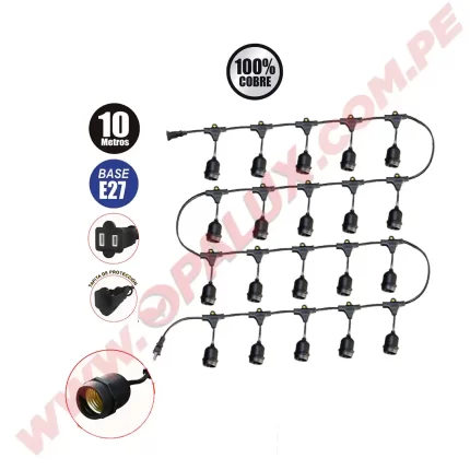 Guirnalda decorativa color negro “Opalux” tipo colgante 10mts para 20 focos 100% cobre