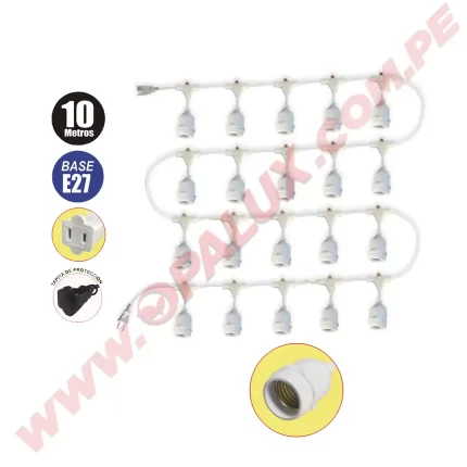 Guirnalda decorativa color blanco “Opalux” tipo colgantge 10mts para 20 focos 100% cobre