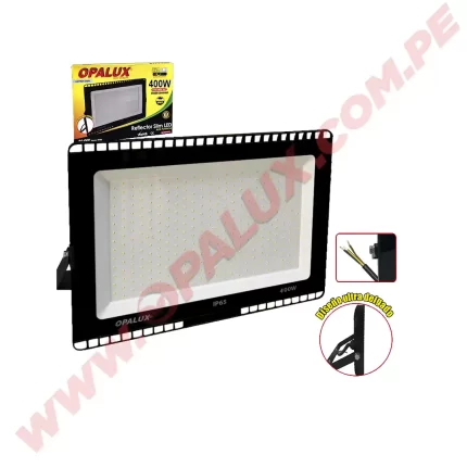 Reflector led 400w “Opalux” Delgado SLIM 34000 lumens color negro luz blanca 6500k IP65 exteriores 50,000hrs 442 LEDs 220-240v