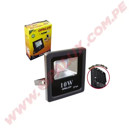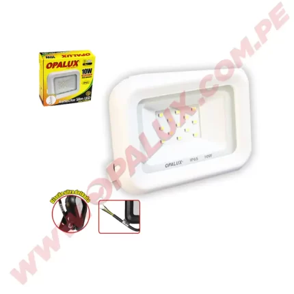 Reflector led 10w “Opalux” delgado SLIM 850 lumens color blanco luz blanca 6500k IP65 exteriores 13 LEDs 185-265v