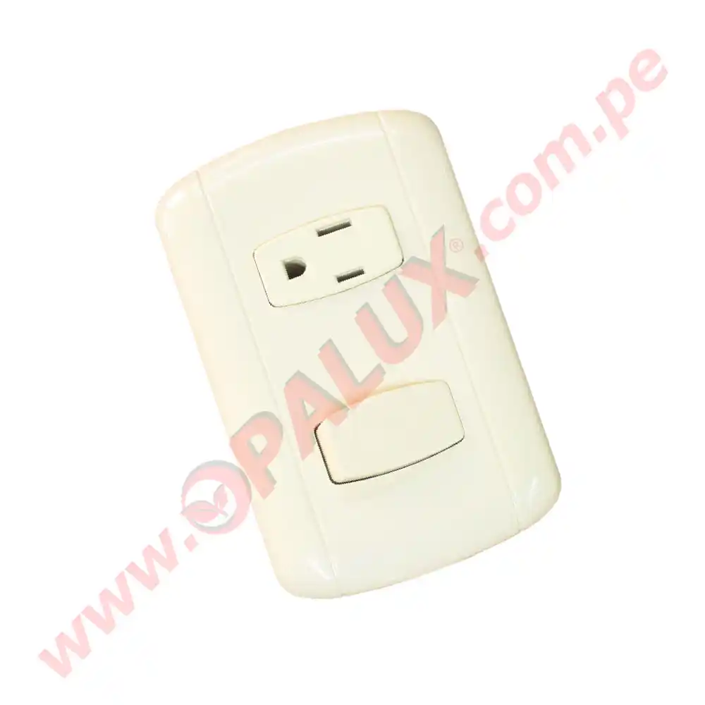 Interruptor y tomacorriente simple línea “CLASSIC” color marfil marca “Opalux” 6A 250V con línea a tierra espiga plana