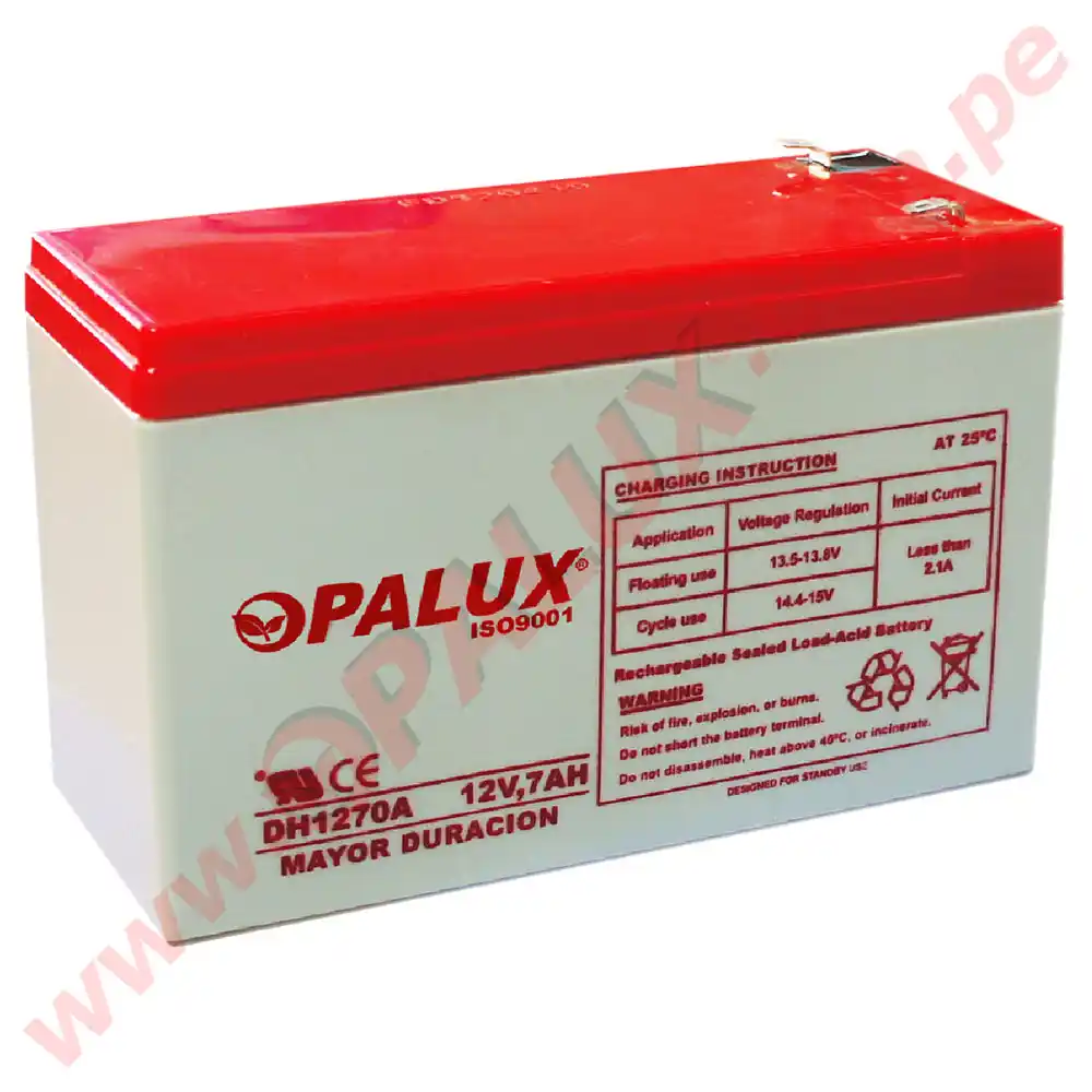 Batería 12V 7AH “Opalux” Extra Duración Nueva 100% original tipo seca de ácido de plomo para paneles de alarma, luces de emergencia, ups, etc