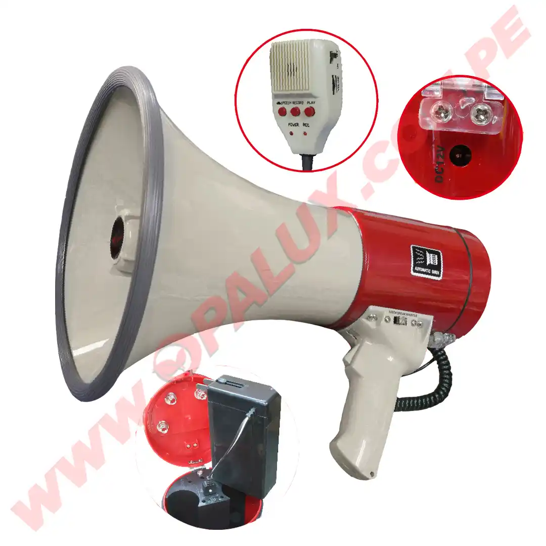 Megáfono de 30W “Fox Audio” micrófono, grabación, sirena, batería recargable y/o pilas D