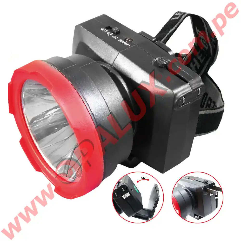 Linterna de cabeza o casco recargable LED 5W “Opalux” 20MTS 2 tiempos color negro y rojo