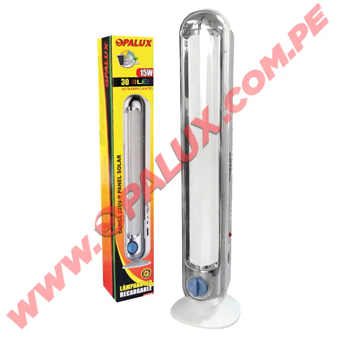 Lampara portatil recargable 23W «Opalux» 46 LED dimable alta 2hrs baja 10hrs conector para panel solar (no incluido) luz blanca gancho para colgar