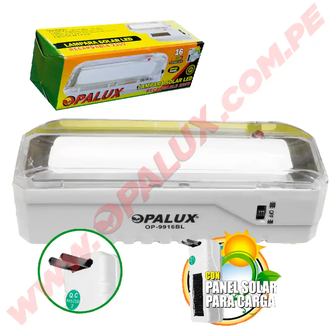 OP-9916BL LÁMPARA SOLAR 16LED RECARGABLE OPALUX