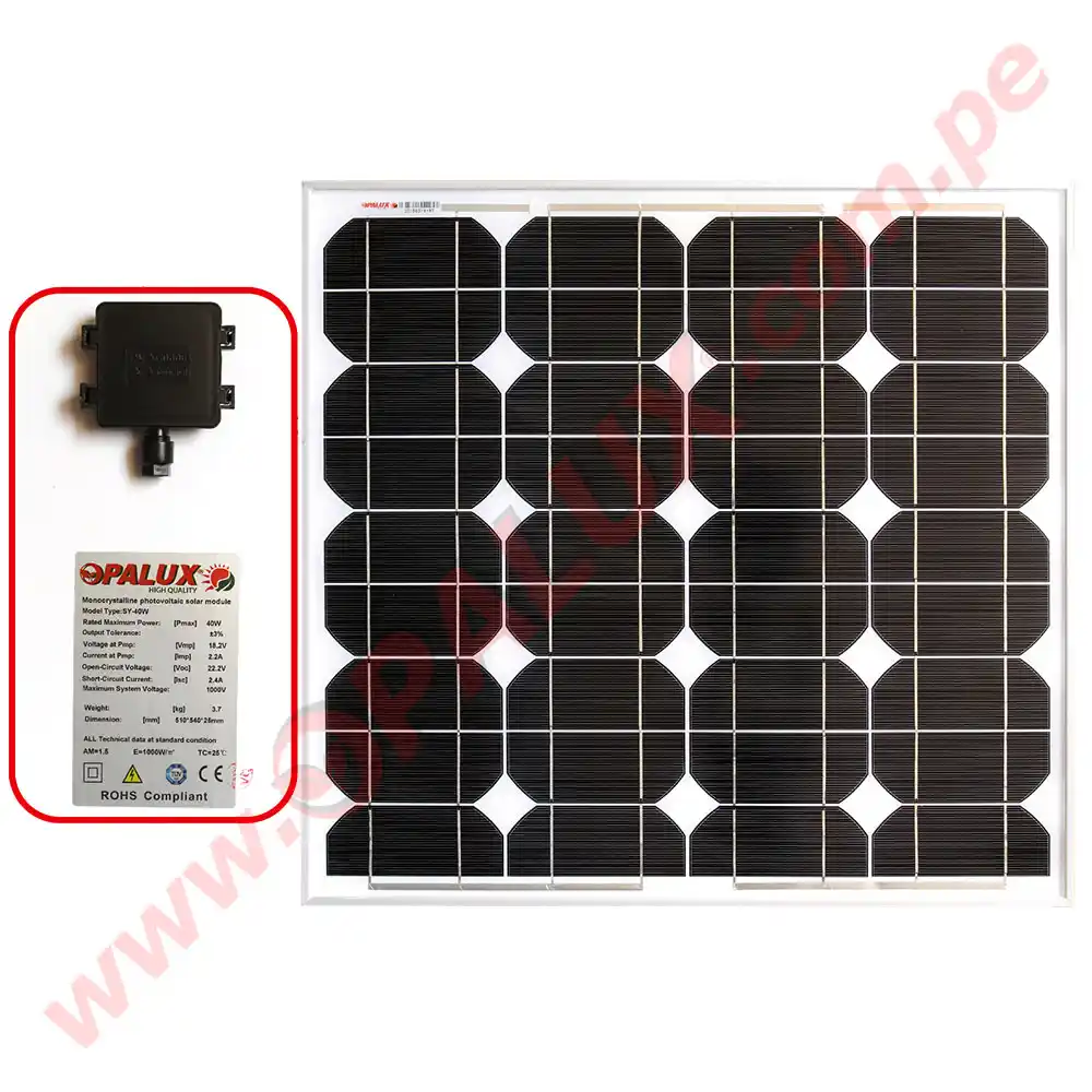 Panel Solar 40W 12v Monocristalino IP-67 “Opalux” 100% Real Fabrica VMP 18.2v IMP 2.2AMP especial para cielos nublados o soleados