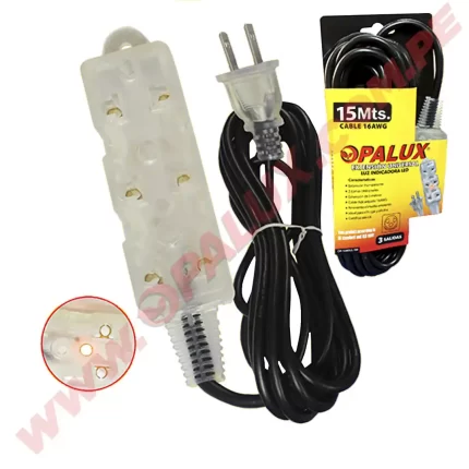 Extensión eléctrica 15mts «Opalux» con 3 de tomacorrientes certificado UL transparente