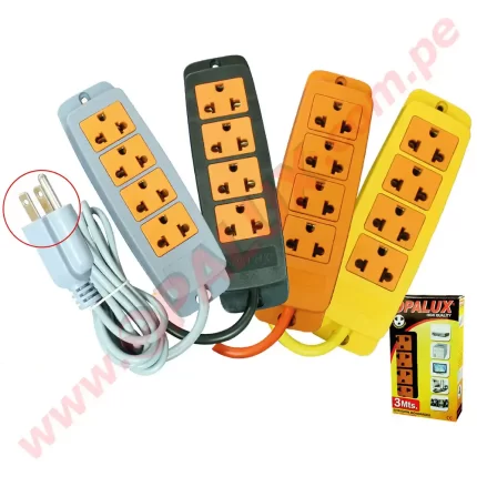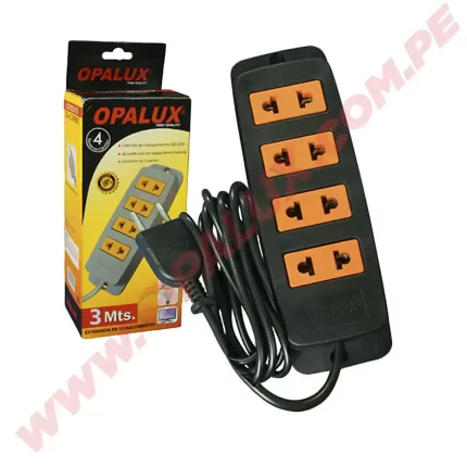Extensión eléctrica 3mts «Opalux» con 4 de tomacorrientes color negro y naranja