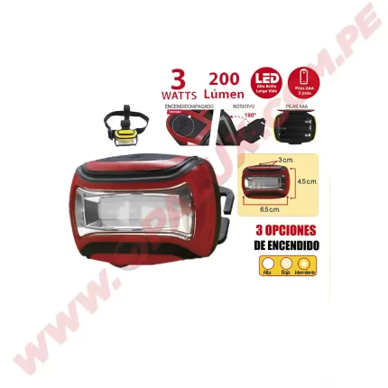 Linterna de cabeza o casco a pilas LED 3W “Opalux” 20MTS 3 tiempos color rojo