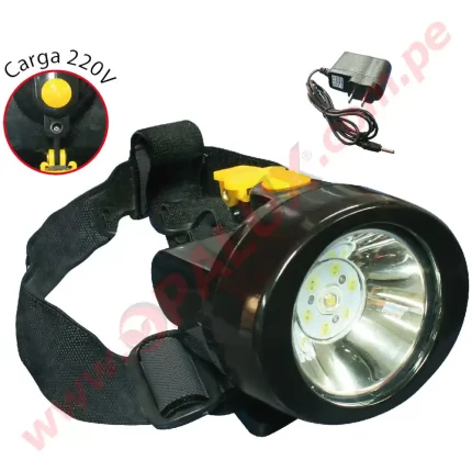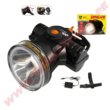 Linterna de minero recargable LED 1W y 6 LED “Opalux” 100MTS 15 Hrs y 25hrs respectivamente incluye cargador portatil