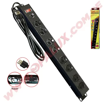 Power Rack PDU 8 tomas multiples 10AMP 1 RU con toma a tierra 1 switch ON/OFF cable 2mts 16AWG “OPALUX” color negro