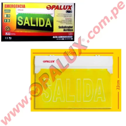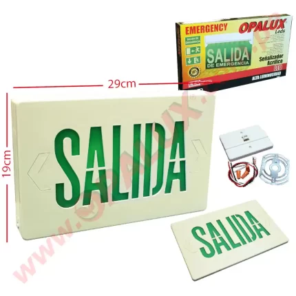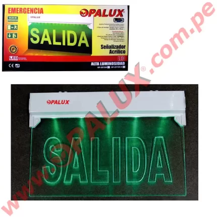 Señal de seguridad LED “Opalux” 29X19cm iluminada TIPO BOX “SALIDA” 120 mins cumple INDECI incluye accesorios 2 tipo de montaje cuerpo ABS