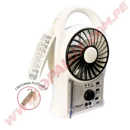 Ventilador portatil 4″ recargable 220v con radio y linterna plegable 2 velocidades «Opalux»